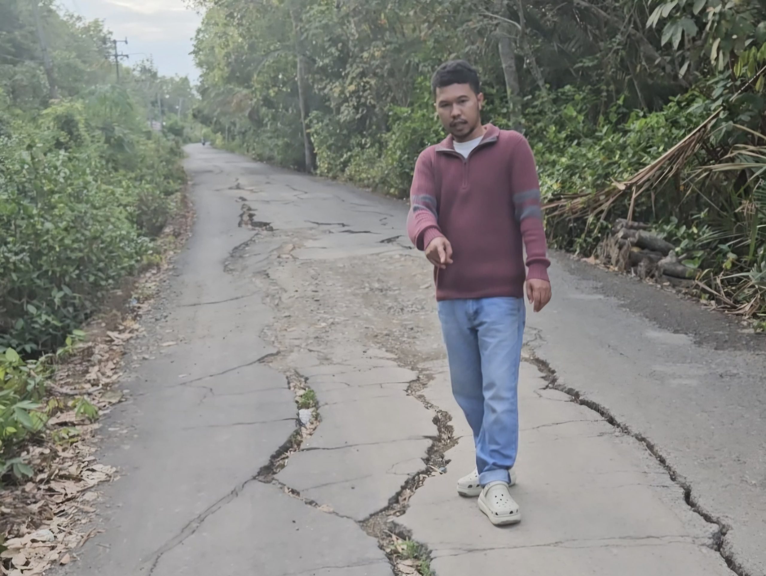 Warga semakin kesulitan beraktivitas, sementara pengendara roda dua harus bertaruh nyawa melintasi jalan yang berlubang, hingga retakan. Sebagai tokoh pemuda yang kini mulai menampakkan perhatiannya kepada daerah, Junaidi, dengan tegas, kembali mendesak pemerintah segera turun tangan.